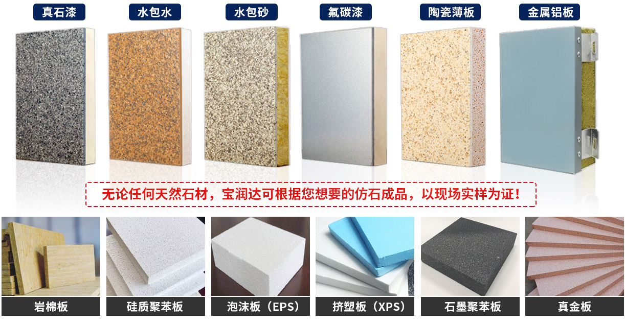 寶潤達擁有6條先進自動化一體板生產線,可生產飾面效果{真石漆、多彩漆,水包水,水包沙,實色/金屬氟碳漆、陶瓷薄板、鋁板},保溫芯材采用{ A級防火巖棉板,真金板,擠塑板,泡沫板,石墨聚苯板,硅脂聚苯板}等,滿足各種項目芯材、飾面效果定制要求,日產量12000平,極速發貨。